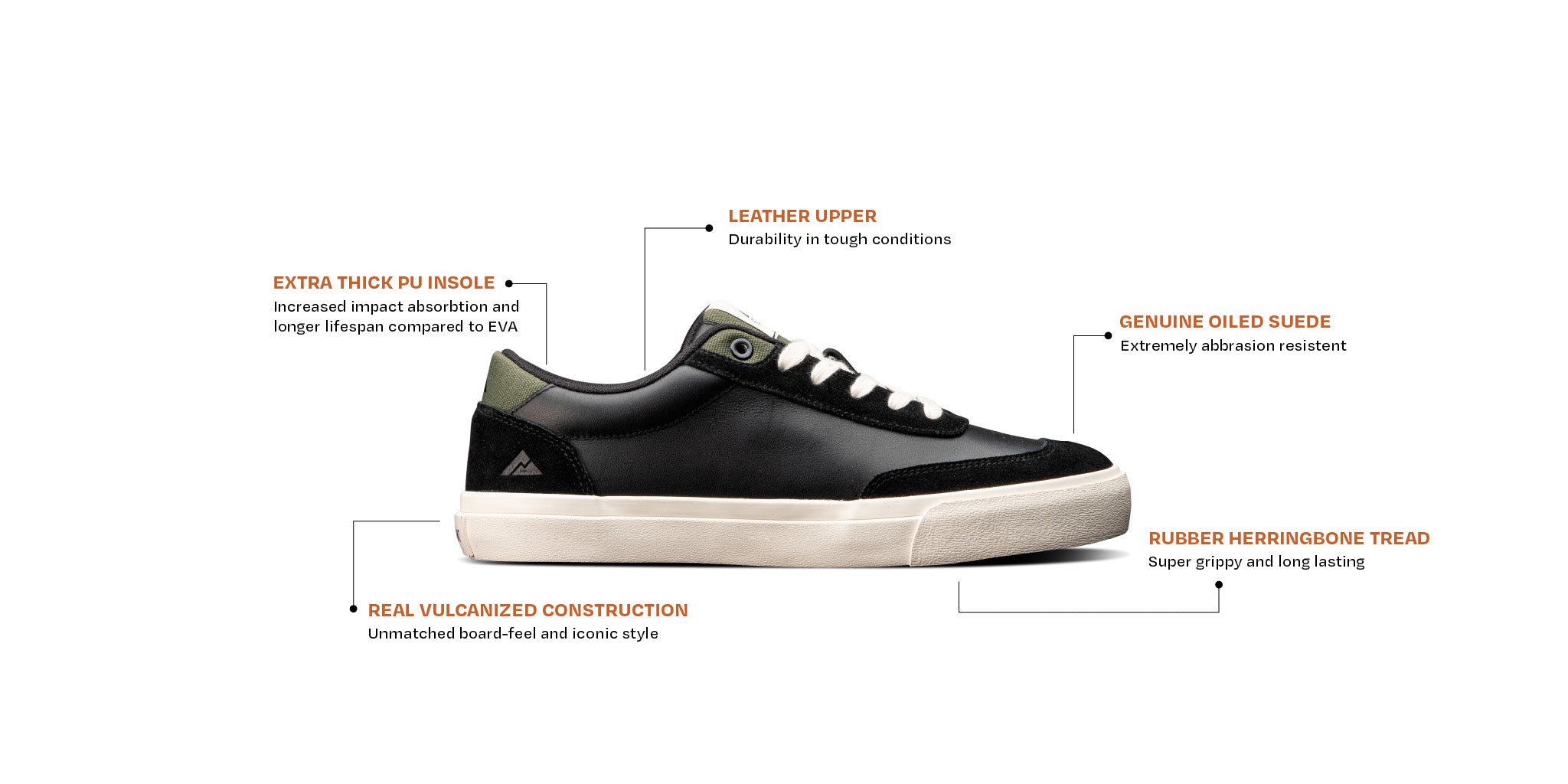 A chill low top sneaker with full grain upper and oiled suede toe and heel caps. This is something that the more radical among you may want to shred the gnar in.