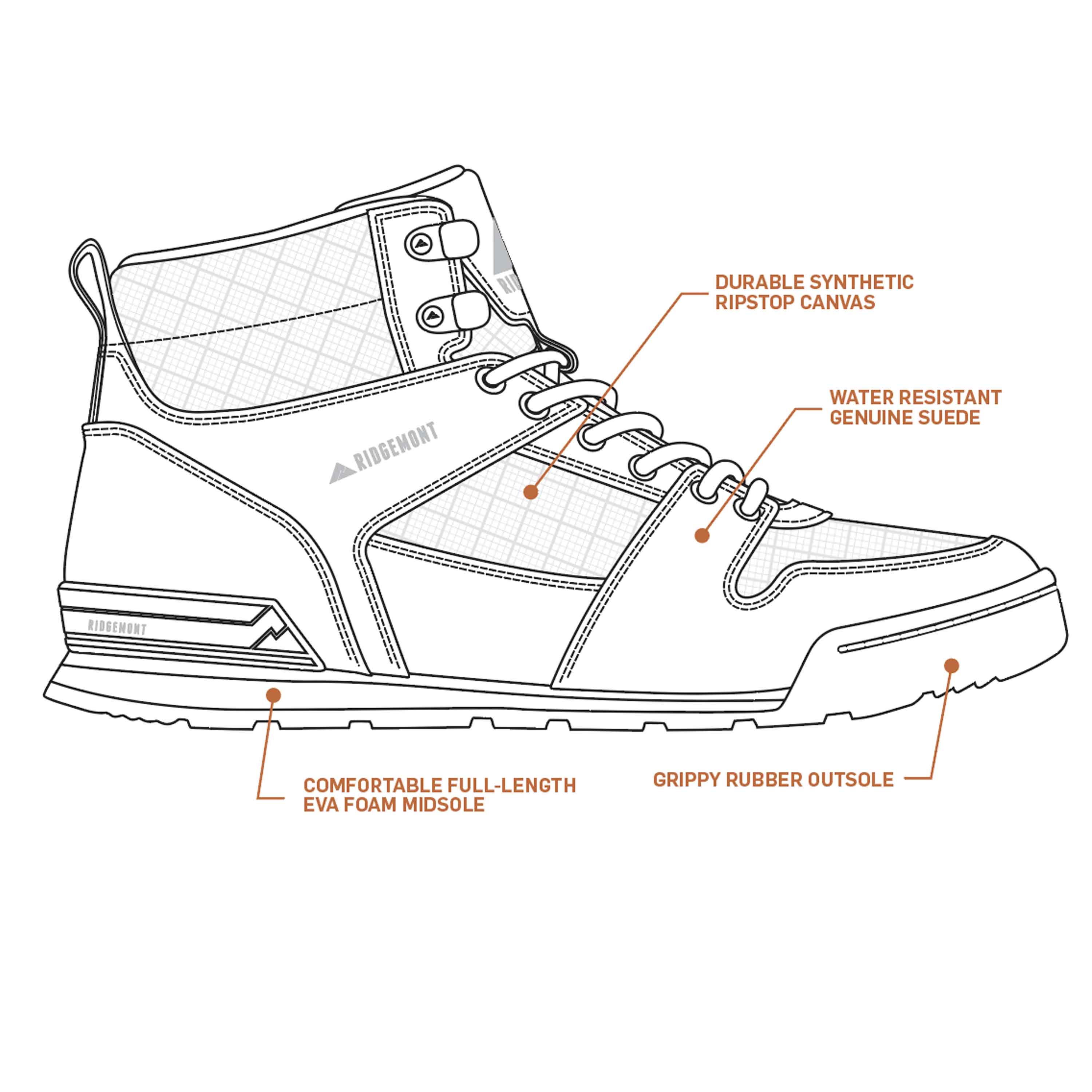 It’s true that the Monty is inspired by the light hikers of the 80s, but we wouldn’t go so far as to call it a retro style. We’ve built the Monty on a slim, modern last, we utilize top quality materials, and state of the art manufacturing processes to make them. However, they do have definite analog aesthetic about them. We love the proportions and simplicity of the pattern which mask the real light-hiker abilities we’ve built in. The exposed EVA midsole cushions every step while the TP heel clip keeps you locked in. Our vari-flex lasting board does double duty as a shank to make sure flexion is controlled, but doesn’t sacrifice daily wearability, and it’s also available with a fully waterproof liner. On top of that, did we mention that the Monty comes in both low-top and hi-top (technically more of a mid-top) versions? Talk about versatility.