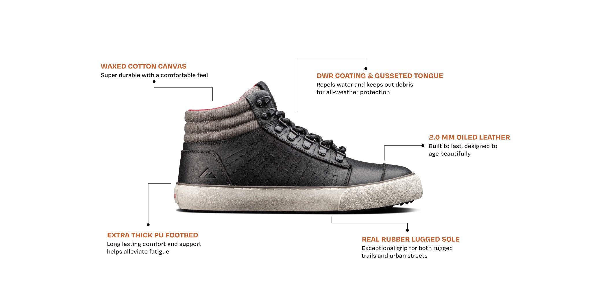 The Outback is unlike any other outdoor shoe on the market. Inspired by the skate shoes we grew up wearing, and sharing the same vulcanized construction method, its low-profile look immediately sets it apart. However, this book's cover doesn't tell the whole story. If you dig deeper, you'll find top-shelf materials and technical features that give the Outback real off-road capabilities. Constructed from 2.0mm oiled leather or suede, a DWR coating, and a gusseted tongue, the Outback will do its part to keep the elements out. On the inside, you'll find a bespoke anti-microbial PU innersole with increased arch support so your feet don't fatigue. We also use a vari-flex Bi Fit lasting board to control flexion over rough terrain, without compromising everyday wearability. Also, they look cool, unless you want that "my whole life is a through-hike" look.