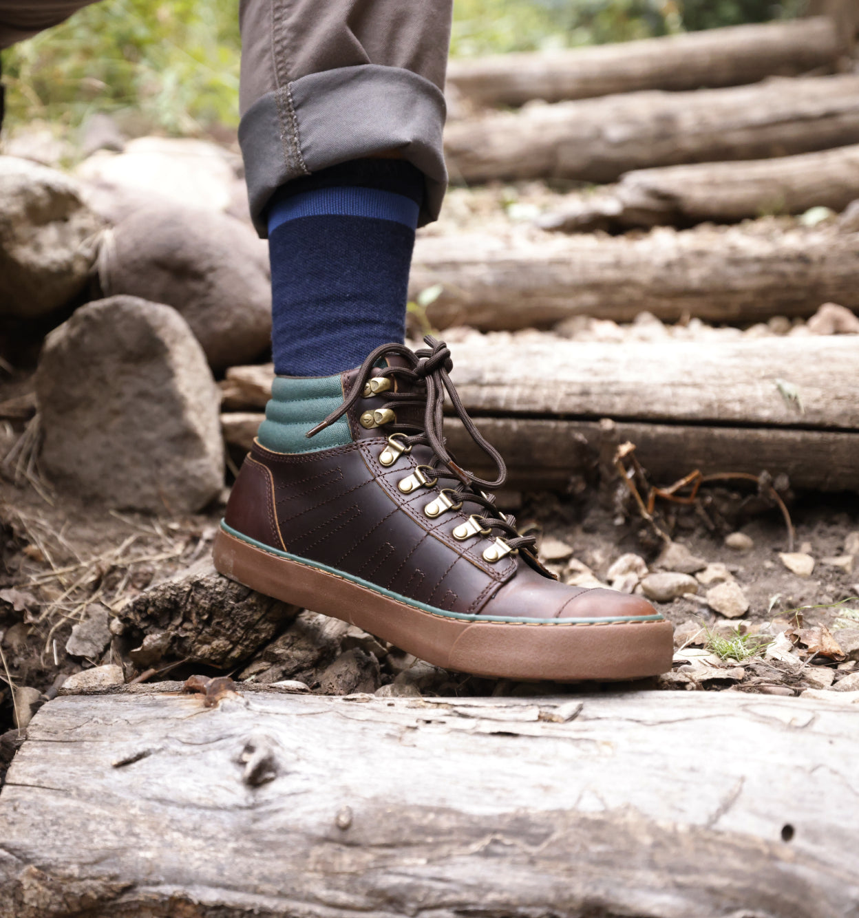 The Outback is unlike any other outdoor shoe on market. Inspired by the skate shoes we grew up wearing, and sharing the same vulcanized construction method, it’s low profile look immediately sets it apart. However, this book’s cover doesn’t tell the whole story. If you dig deeper you’ll find top shelf materials and technical features that give the Outback real off-road capabilities. Constructed from 2.0mm oiled leather or suede, a DWR coating, and a gusseted tongue, the Outback will do its part to keep the elements out. On the inside you’ll find a bespoke anti-microbial EVA innersole with increased arch support so your feet don’t fatigue. We also use a vari-flex Bi Fit lasting board to control flexion over rough terrain, without compromising everyday wearability. Also, they look cool, unless you want that, “my whole life is a through-hike” look.