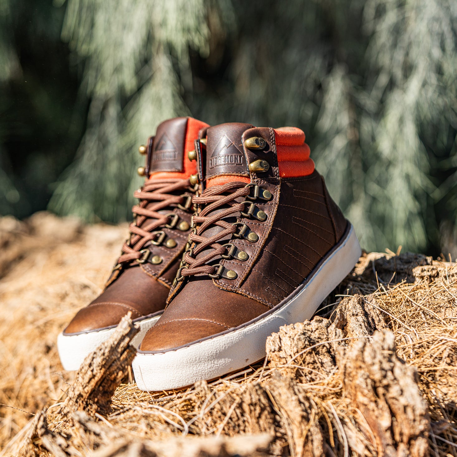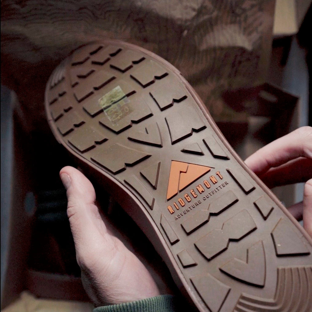 - Bespoke Ridgemont gum rubber vulcanized lugged sole for superior traction & grip